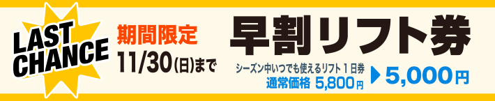 早割リフト券、シーズン前のラストチャンス!